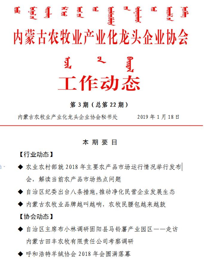 標題:內蒙古農牧業(yè)產業(yè)化龍頭企業(yè)協會工作動態(tài)第3期(總第22期)