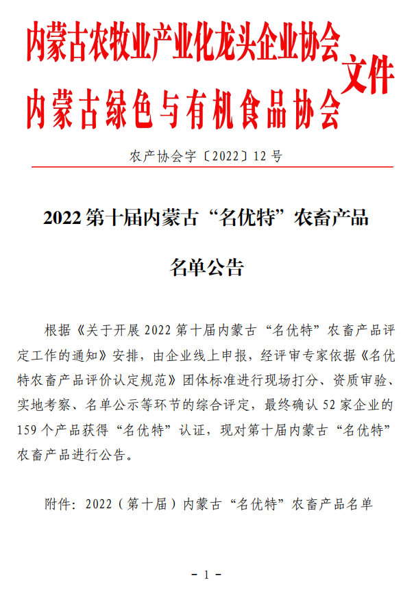 標(biāo)題:2022第十屆內(nèi)蒙古“名優(yōu)特”農(nóng)畜產(chǎn)品名單公告