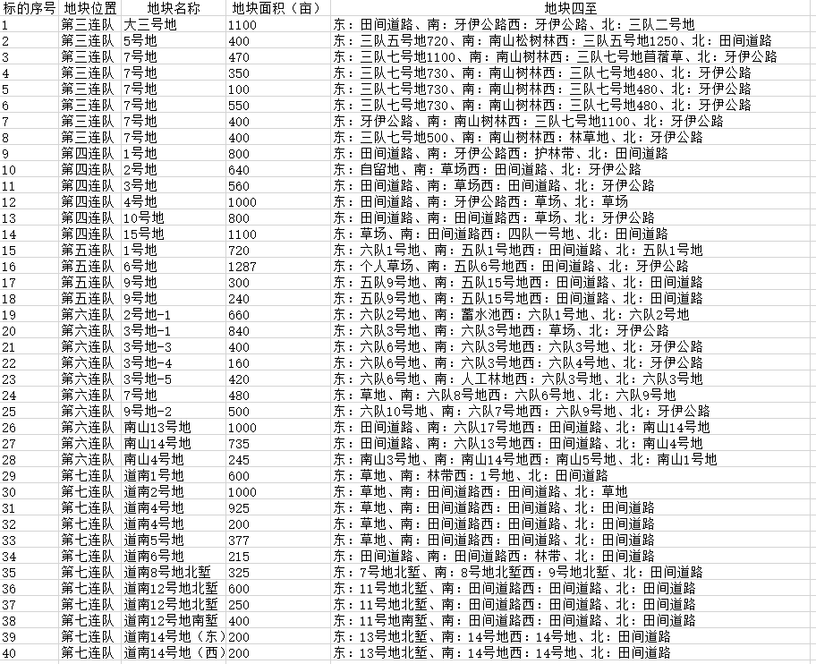6.掛牌價(jià):見明細(xì)表(掛牌價(jià)為每畝耕地應(yīng)當(dāng)支付的租賃底價(jià))