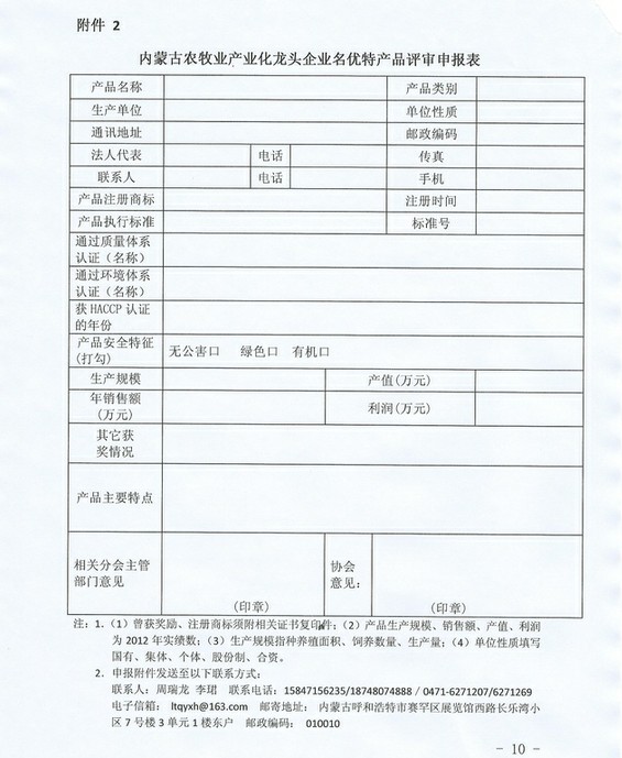 附件2:內(nèi)蒙古農(nóng)牧業(yè)產(chǎn)業(yè)化龍頭企業(yè)名優(yōu)特產(chǎn)品評審申報表.doc