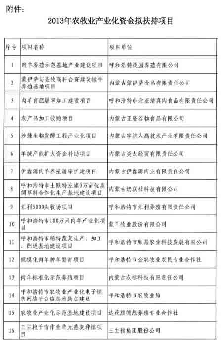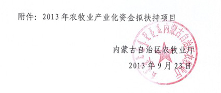 2013年內蒙古農(nóng)牧業(yè)產(chǎn)業(yè)化項目公示通知