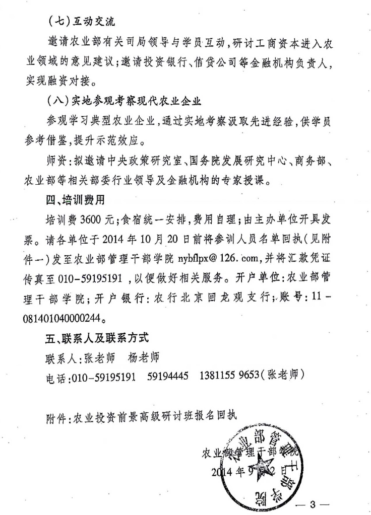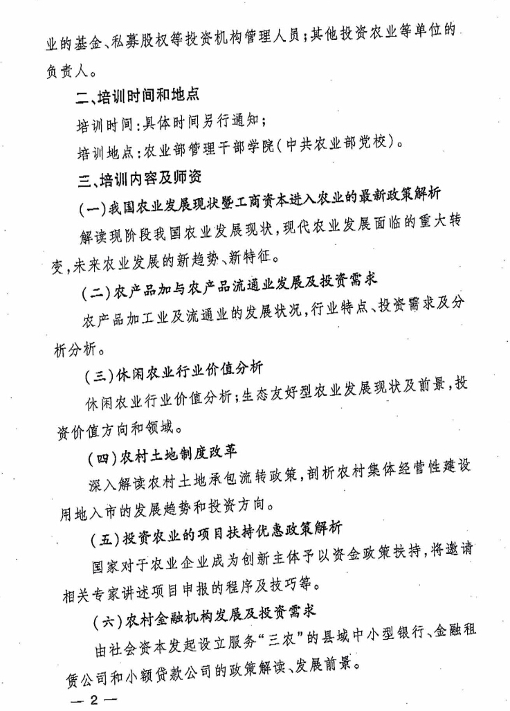 轉(zhuǎn)發(fā)“關于舉辦農(nóng)業(yè)投資前景高級研討班的通知”
