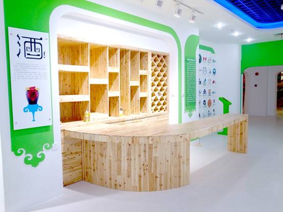 : 上海西郊國(guó)際內(nèi)蒙古館現(xiàn)場(chǎng)實(shí)景圖,現(xiàn)場(chǎng)分為展示區(qū)和體驗(yàn)區(qū),展示區(qū)以產(chǎn)品展示銷售為主,現(xiàn)代科技結(jié)合時(shí)尚展廳設(shè)計(jì)風(fēng)格,藍(lán)綠白相結(jié)合,映襯藍(lán)天、白云、草原;體驗(yàn)區(qū)突出體驗(yàn)品嘗、商務(wù)洽談功能,以現(xiàn)代蒙古包造型設(shè)計(jì),突出民族氣息,展現(xiàn)內(nèi)蒙古特色。