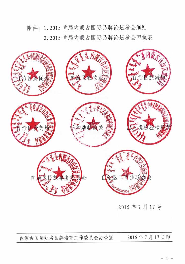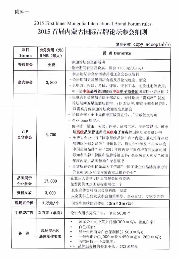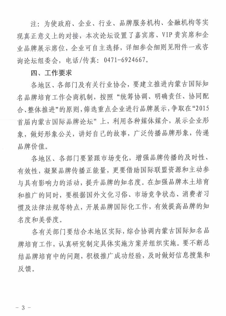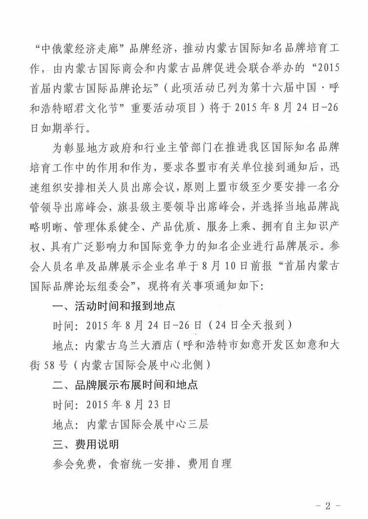 關于參加“2015首屆內蒙古國際品牌論壇”的通知