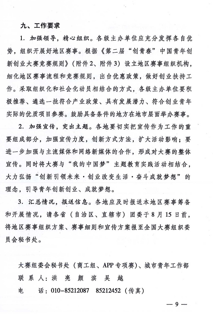 關(guān)于舉辦第二屆“創(chuàng)青春”中國青年創(chuàng)新創(chuàng)業(yè)大賽的通知