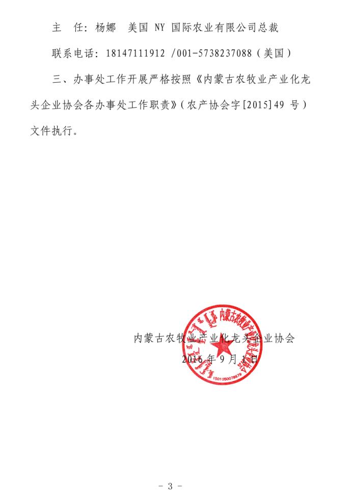 關(guān)于成立內(nèi)蒙古農(nóng)牧業(yè)產(chǎn)業(yè)化龍頭企業(yè)協(xié)會美國辦事處的通知