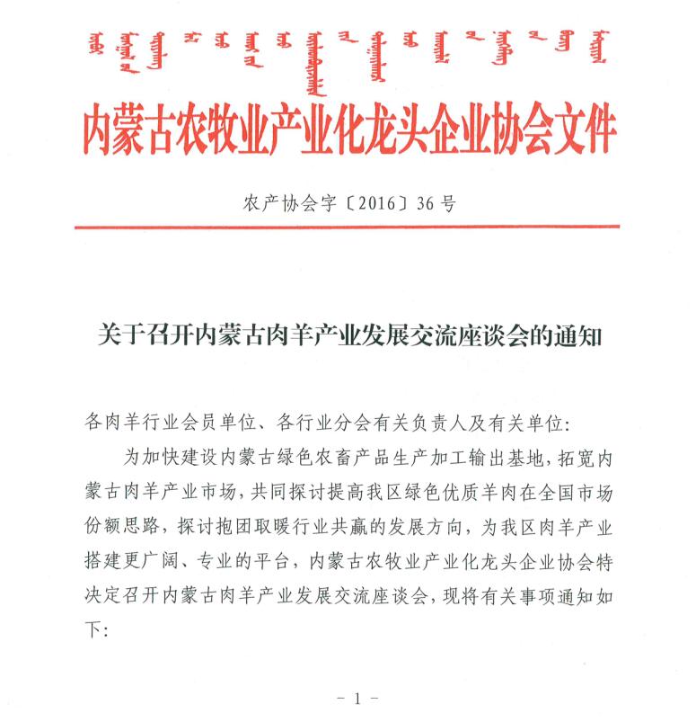 關(guān)于召開內(nèi)蒙古肉羊產(chǎn)業(yè)發(fā)展交流座談會的通知
