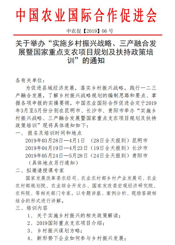 附件:關(guān)于舉辦“實(shí)施鄉(xiāng)村振興戰(zhàn)略、三產(chǎn)融合發(fā)展暨國(guó)家重點(diǎn)支農(nóng)項(xiàng)目規(guī)劃及扶持政策培訓(xùn)”的通知