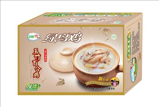 綠鳥雞的經(jīng)典口味。包裝內(nèi)附贈草原興發(fā)特制湯包,方便快捷,味道更鮮美