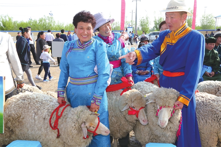 烏審旗牧民趕著自家的優(yōu)質(zhì)細(xì)毛羊前來參加旗政府組織的“賽羊大會(huì)”。