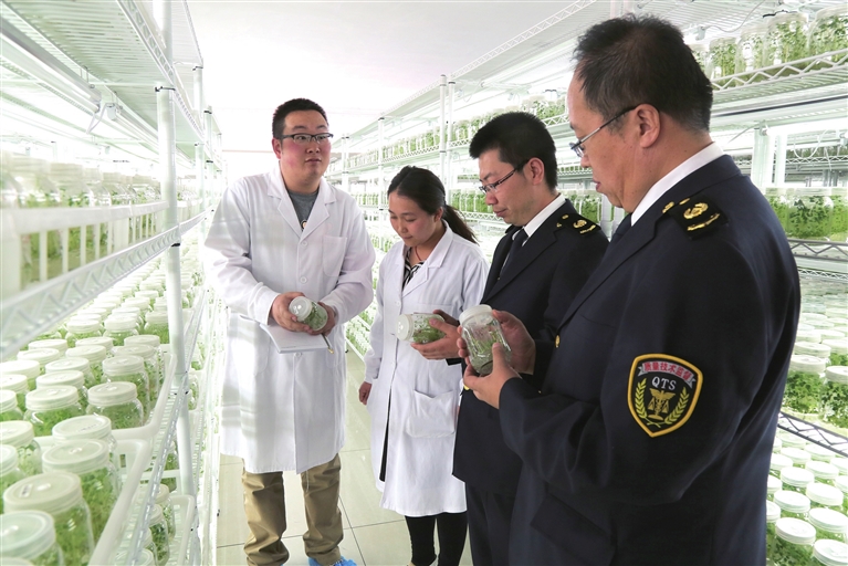 質(zhì)監(jiān)工作人員來到烏蘭察布市民豐種業(yè)公司,了解標(biāo)準(zhǔn)化育苗情況。