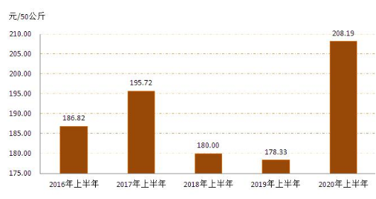 3   20162020年上半年全區(qū)小麥?zhǔn)召弮r格對比圖
